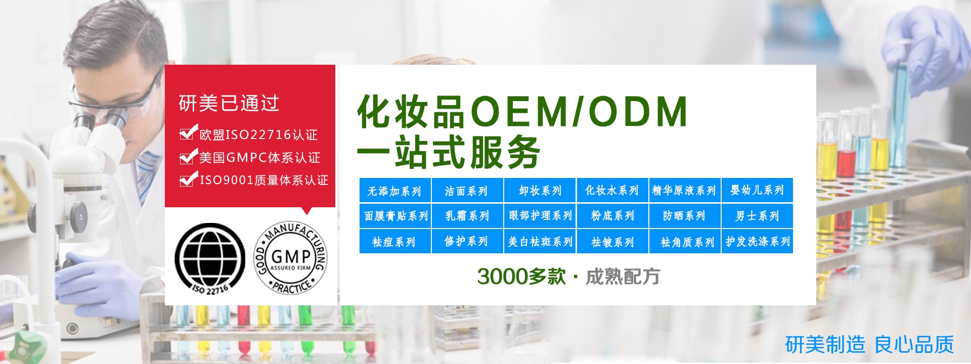 廣州市白云區(qū)研美化妝品廠由企業(yè)家陳昭武先生創(chuàng)建于2005年,是可芳化妝品集團旗下的化妝品加工廠。廠房占地面積約25000多平方米,現(xiàn)有16條化妝品生產線,生產員工300多人,研發(fā)工程師人員15人。工廠有GMP10萬級車間凈化系統(tǒng),全套乳化檢測生產設備,并通過了ISO9001質量體系、歐盟ISO22716化妝品良好生產規(guī)范體系及美國GMPC體系認證。工廠與法國、德國、美國等歐美國家的原料供應商、設備商合作,并長期與國內相關科研院所共同研發(fā)優(yōu)良品質的產品。工廠憑借成熟的生產工藝、專業(yè)的服務水準,贏得了廣大客戶的認可,目前已與國內外一百多家專業(yè)線、日化線、微商電商品牌企業(yè)建立了合作關系,是化妝品OEM/ODM加工合作的理想企業(yè)。研美一直堅持誠信經營、精益求精的經營理念,致力于打造口碑良好的化妝品代加工廠家平臺,為廣大品牌客戶提供專業(yè)的增值服務。